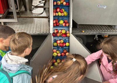 Auch diese Jahr pflückten unsere Erst- sowie Zweitklässler fleißig viele Säcke voll mit Äpfeln. Die Bäume werden uns immer dankenswerterweise von den Familien im Dorf bereitgestellt. Am 24.09.25 fuhren wir mit den gesammelten Äpfeln zur mobilen Apfelpresse, um…